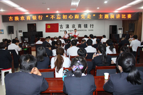 为纵深推进全行广大团员青年“一学一做”教育实践,坚决贯彻落实省联社党委各项决策部署,凝聚推动全行党团建设、改革发展、业务经营等各项工作开创新局面的青春智慧力量,古浪农商银行于8月29日举办“不忘初心跟党走”主题演讲比赛,来自各部门、支行、分理处的25名员工参加了比赛。总行领导班子成员、各支部书记及机关、城区网点全体员工100余人观看了比赛。