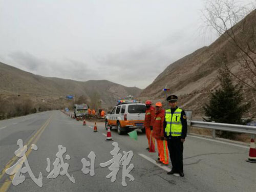 [图]路政人员在维护古浪公路养护管理站