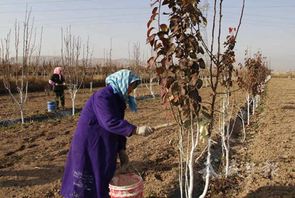 [图]古浪县泗水镇泗水村村民为皇冠梨树