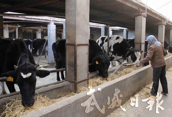 [图]古浪县古浪镇小桥村村民正在给奶牛