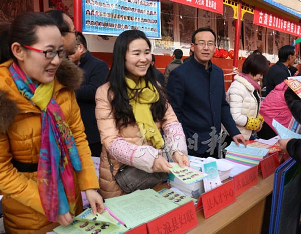 [图]古浪县妇联干部为群众发放宣传材料