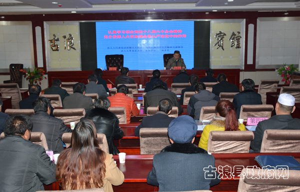 12月28日,县人大常委会主任赵彦民为山区乡镇人大代表和县人大机关干部传达十八届六中全会精神。县人大常委会副主任王生仁、陈玉才、王兴参加会议。