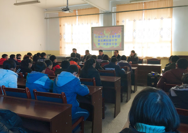 最后,在激昂的团歌声中共青团黄花滩初级中学第二次团员大会顺利闭幕。