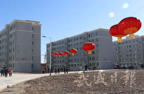 古浪县绿洲生态移民小城镇居住区挂起红灯笼喜迎新春
