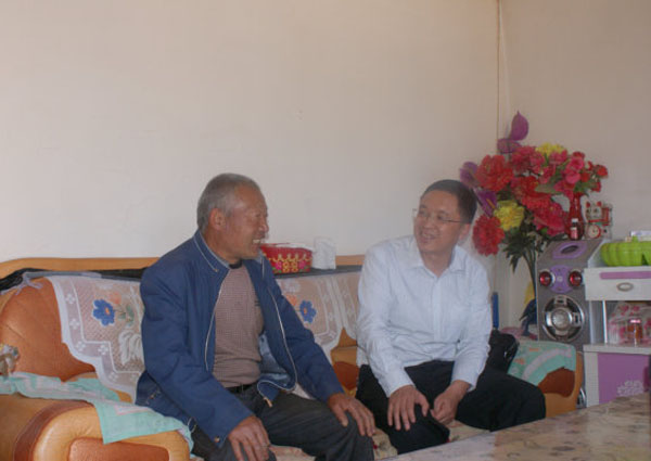 在结对帮扶的横梁乡酸茨沟村刘昌家走访时,赵长龙同志与刘昌夫妇亲切交谈,耐心询问了解他们生活情况,在得知刘昌一家已在绿洲生态小区报名搬迁,并将于今年10月份分得一套70多平方米的楼房入住后,赵长龙同志叮嘱二老要积极响应县委县政府“下山入川、脱贫致富”的号召,搬出大山,改善生产生活条件,争取早日致富。