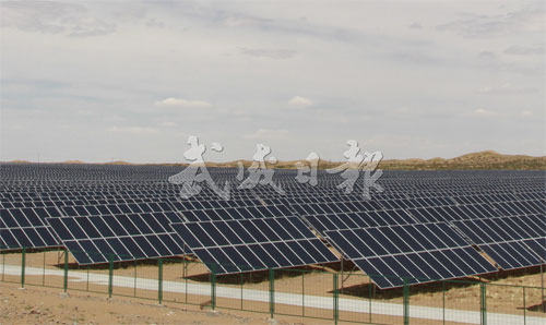 光伏厂区一瞥(6月25日摄)。当日,武威职业学院校办企业建设的古浪20兆瓦光伏扶贫项目正式并网发电。该项目位于古浪县黄花滩北部沙漠地区,占地面积约700亩,估算总投资约1.8亿元。电站并网发电全额上网后,年上网电量约2703.78万千瓦时,年发电收入约2159万元,年平均利税669万元,年扶贫800户,年户均扶贫资金3000元,扶贫期限20年。