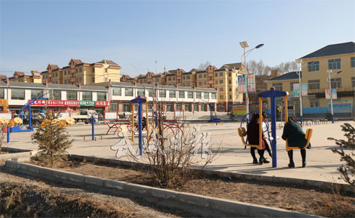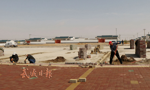 [图]工人们正在移民点广场铺设地砖
