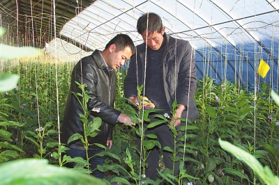 [图]古浪县园艺站农艺师陈立宏(左)指