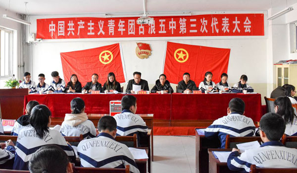 12月8日下午,在庄严的国歌声中,共青团古浪五中第三次代表大会在学校综合楼一楼会议室隆重召开,119名团代表参加了此次会议。
