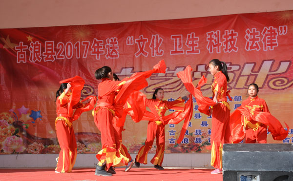 1月13日,我县送“文化 、科技、卫生、法律”四下乡活动走进土门镇台子村,把精彩纷呈的文艺节目送到广大群众家门口,让他们就近享受到了丰富多样的文化大餐。