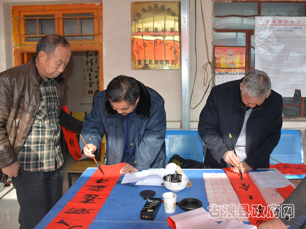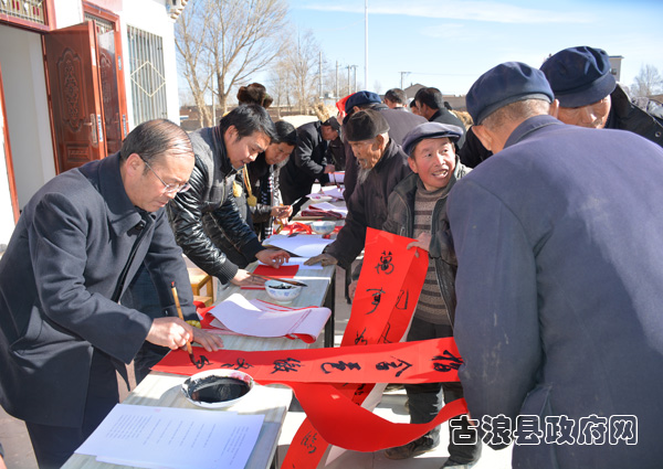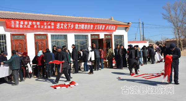 春节来临之际,1月12日,由县委宣传部、县文广局、县文联、县书法家协会共同举办的精准扶贫送文化下乡义务写春联活动走进古浪镇部分村组, 把浓浓的年味儿和新春的祝福送到了当地老百姓的家门口。