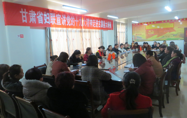 12月25日下午,省妇联党的十九大大精神宣讲走进大靖镇,面对面向妇女群众宣传党的十九大精神。副县长李红陪同。