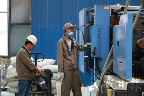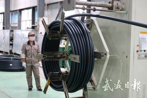 近日,记者走进甘肃达华节水科技有限公司生产车间,机声轰鸣、人来车往。节水滴灌设备流水线上,工人们正在进行加热、定型、冷却、切割等一道道工序,车间内一派井然有序、热火朝天的生产场景。